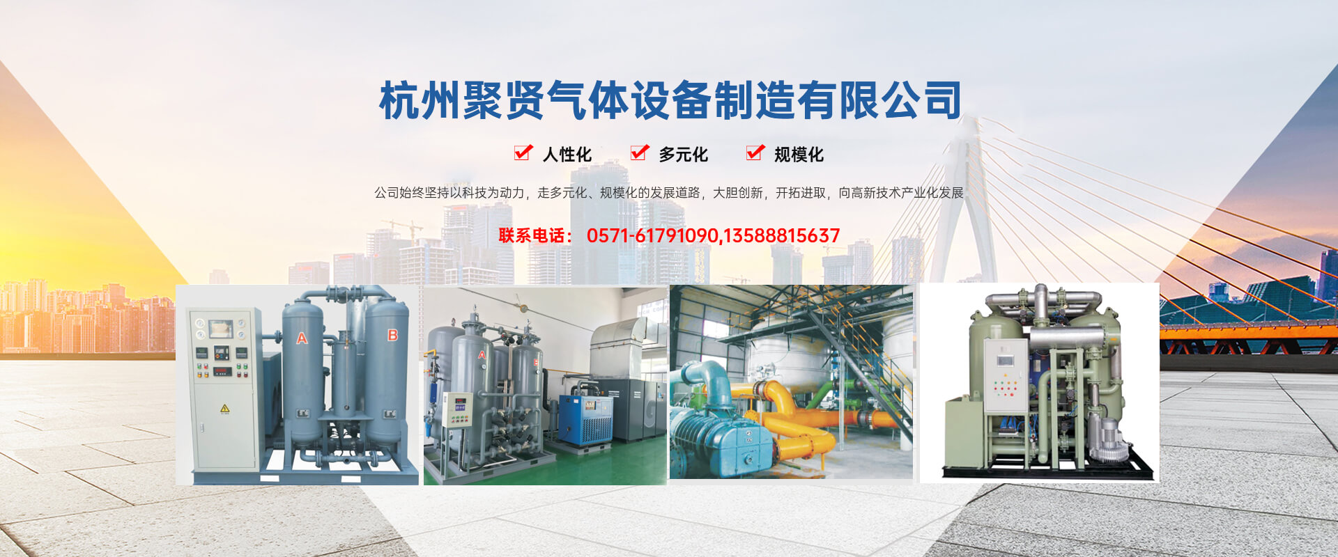杭州聚賢氣體設備制造有限公司坐落在美麗的富春江畔,位于杭州富陽胥口工業園區,處于杭州西湖與**名勝風景區——千島湖之間,經濟發達、交通十分便利。杭州聚賢氣體設備制造有限公司是一家以氣體凈化、分離、混合為專業的企業。注冊資金3000萬元,已通過ISO—9001質量體系認證。公司始終堅持以科技為動力,走多元化、規模化的發展道路,大膽創新,開拓進取,向高新技術產業化發展。